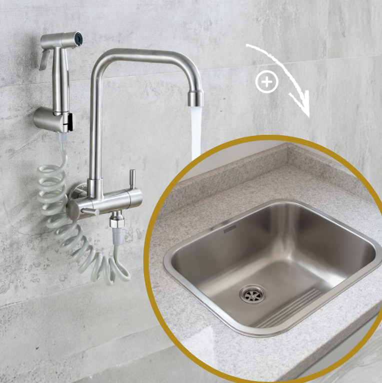 1. Torneira de Parede com Ducha de Lavanderia em Aço Inoxidável